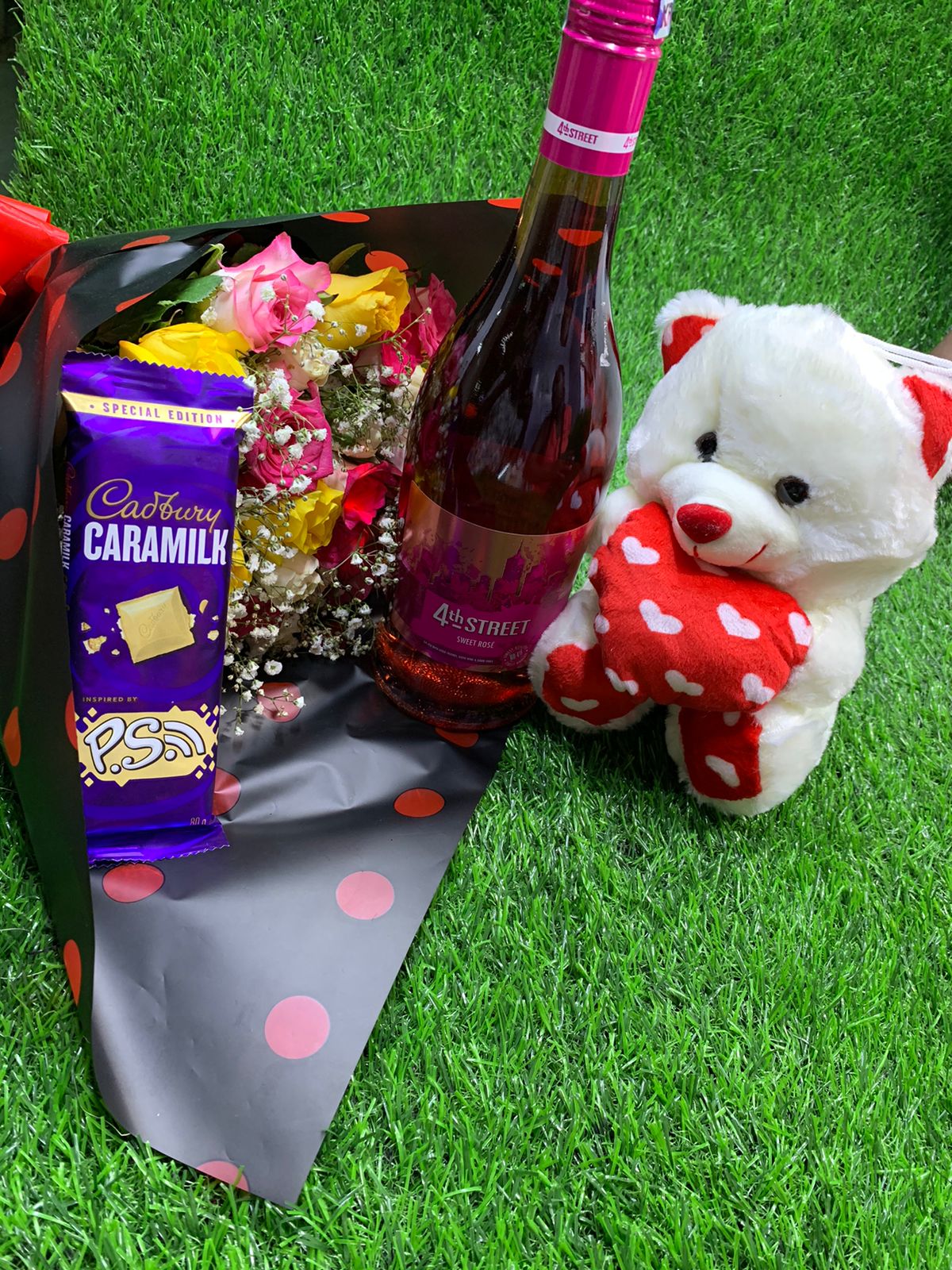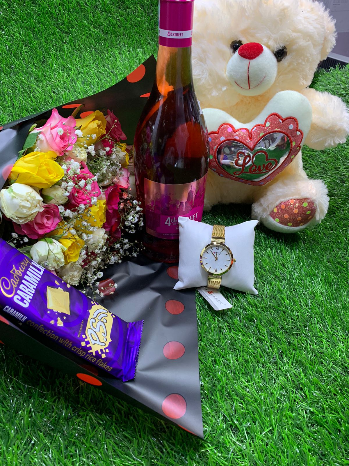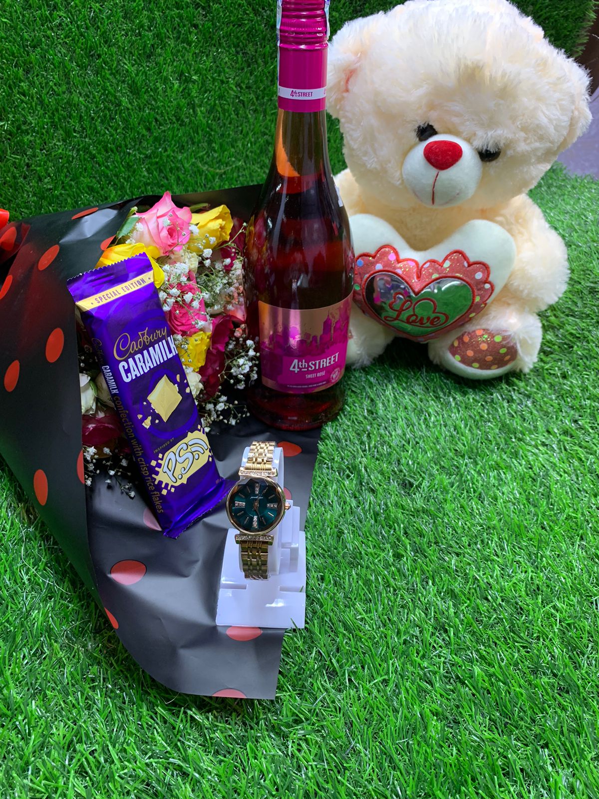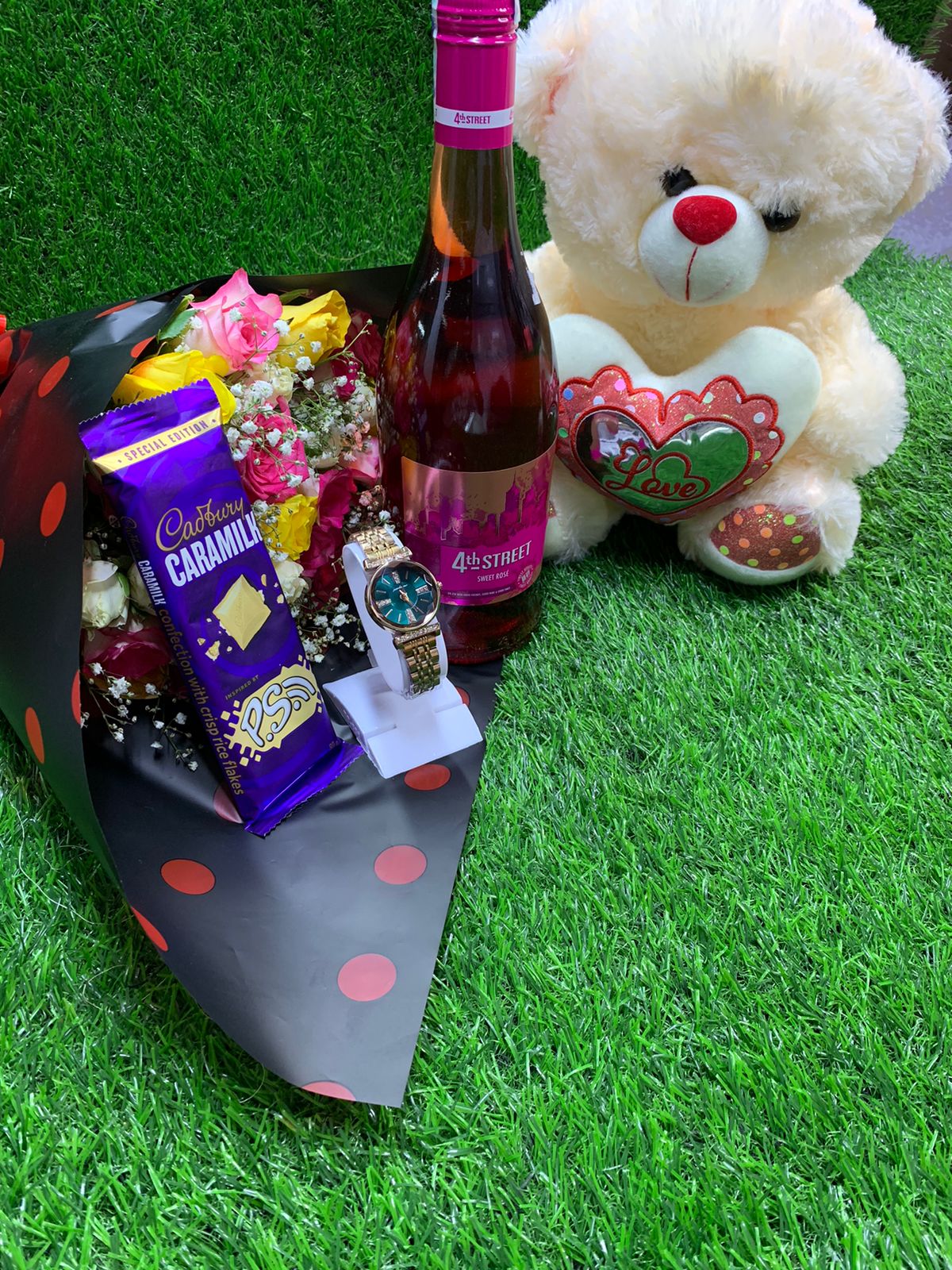💐 💐 BOUQUET FLOWER PACKAGE 💐🌹 ✅ Bouquet flowers ✅750 ml Wine ✅ 30cm Teddy bear ✅Cadbury chocolate 🍫 ✅ Gift card+gift bag ✅️ High quality wrist watch *NB: AVAILABLE...